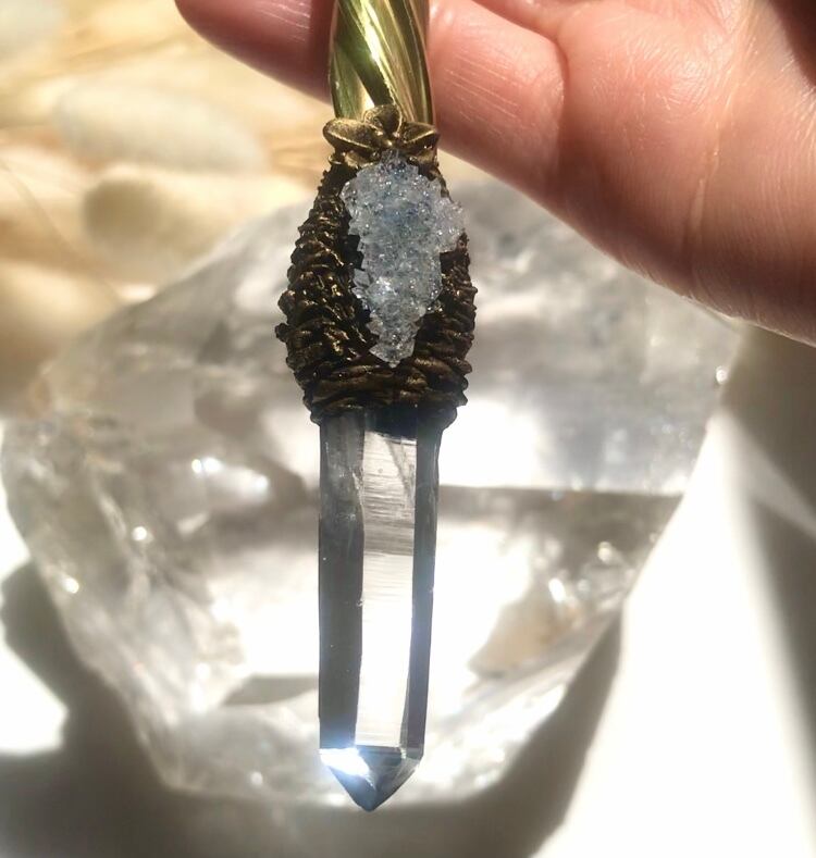 レインボーアメジストとコロンビア産レムリアンポイントのフェアリーゴールドシャフトワンド