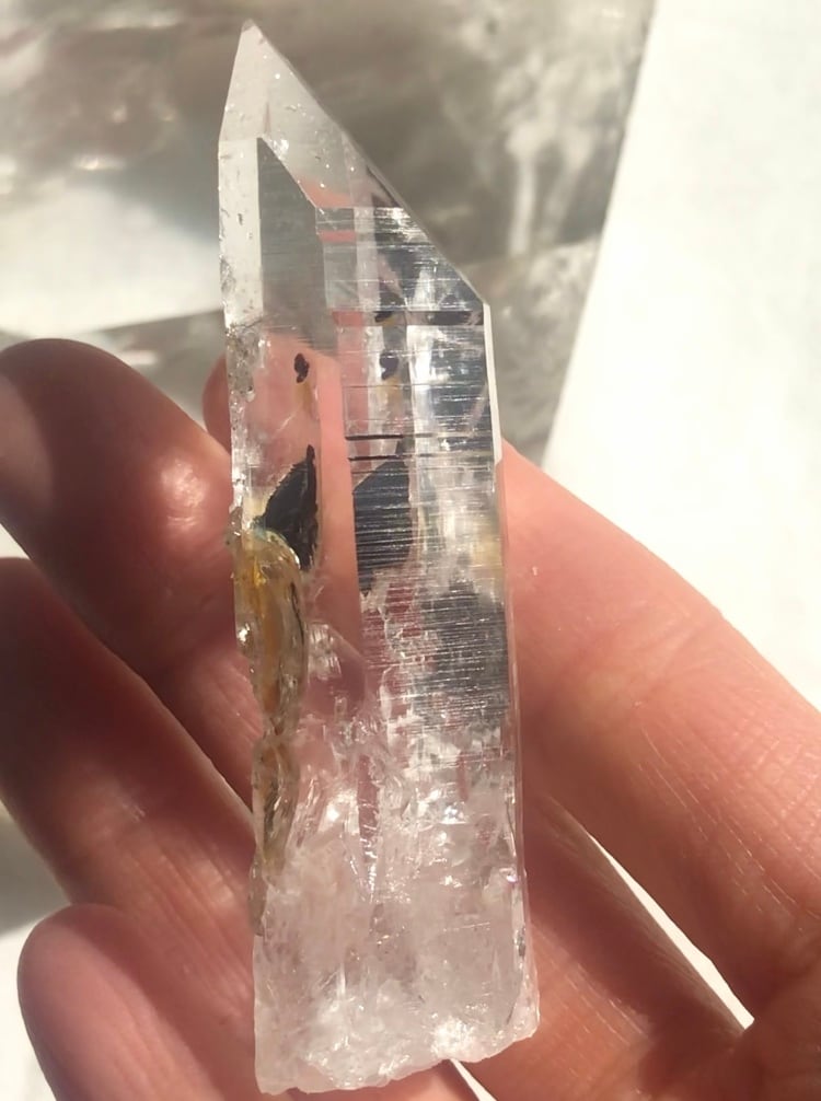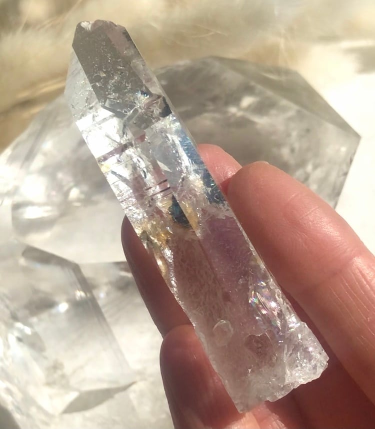 虹が入った透明感のある、とても美しい原石ポイントです。