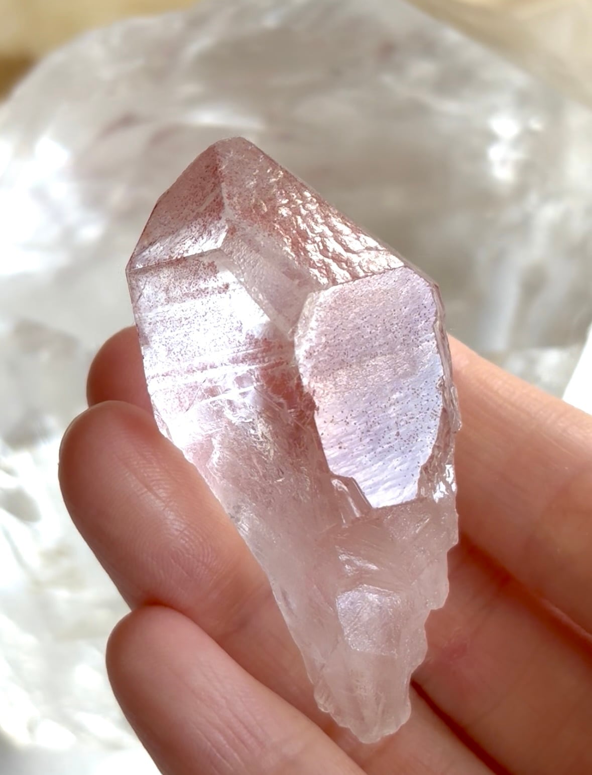 ストロベリーレムリアンやローズレムリアンとも呼ばれる可愛いピンク色のレムリアンクォーツです。