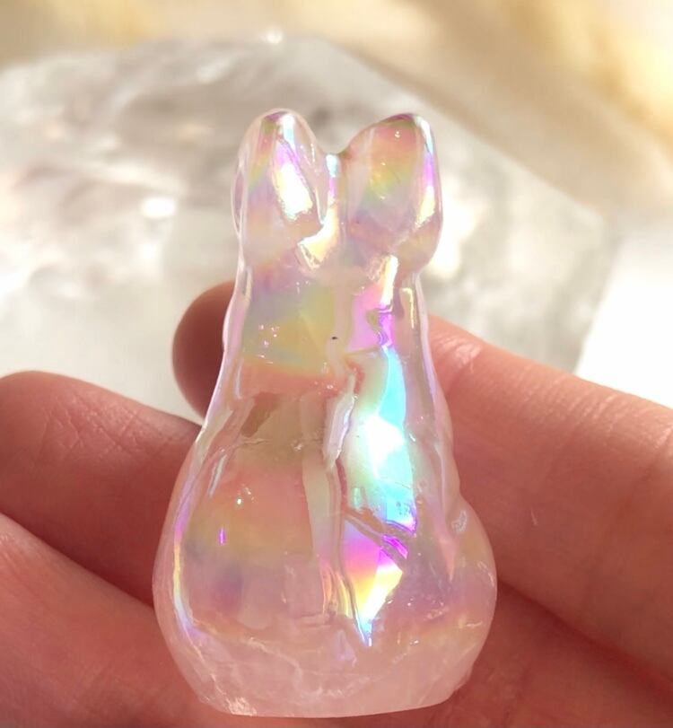 エンジェルオーラローズクォーツの小さなうさぎです。