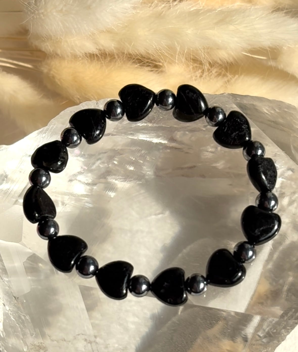 高純度テラヘルツとハートのブラックトルマリンのブレスレット 近赤外線 電磁波対策