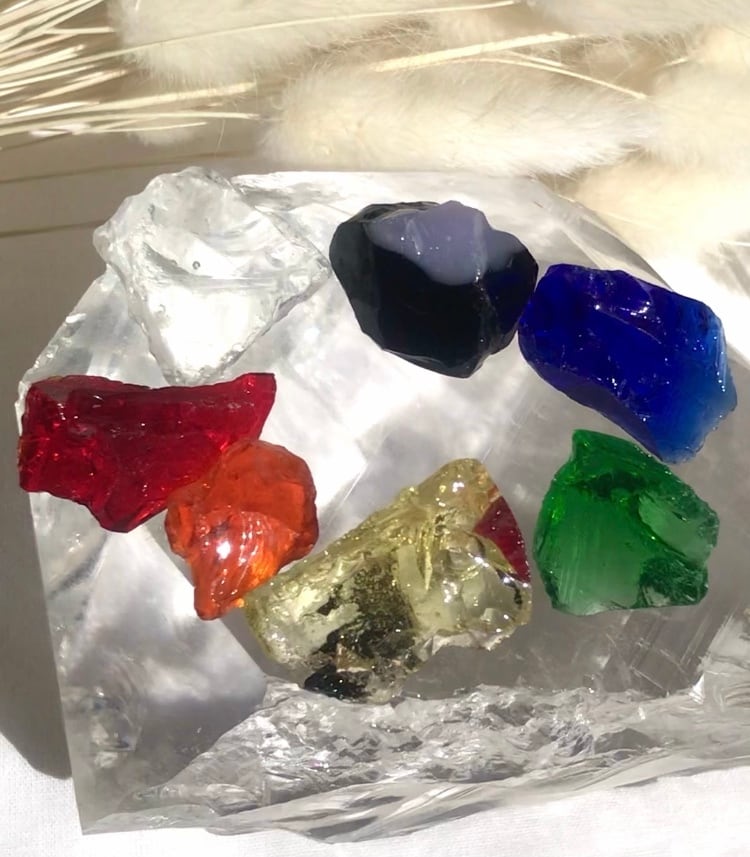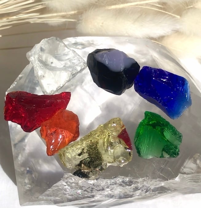 可愛いミニサイズのアンダラクリスタルがチャクラカラー分カラフルに揃います。
